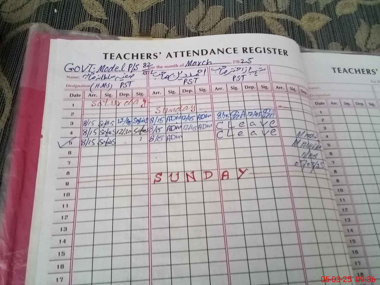 | Name: Sa**** Su**** Designation: (School Headmaster's/Headmistress's) PST Phone/Cell Number: 03**** |