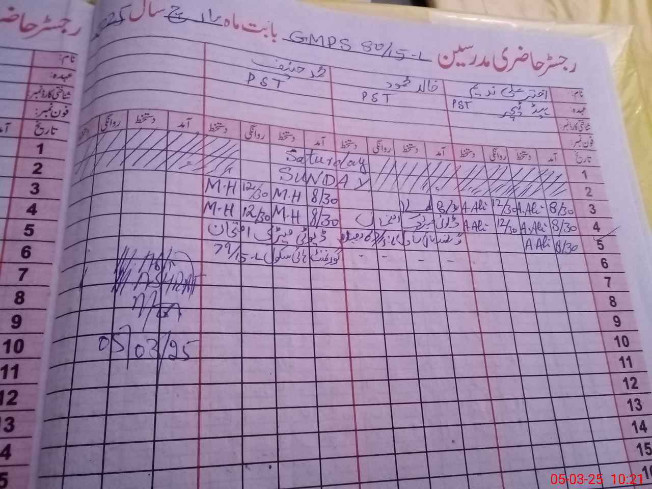 | Name: Ak**** Al**** Designation: (School Headmaster's/Headmistress's) PST Phone/Cell Number: 03**** |