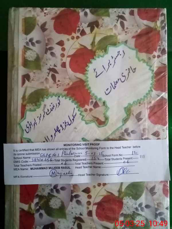 | EMIS Code: 38410656 | Name of School: GGPS NO. 1 PHULARWAN | |||