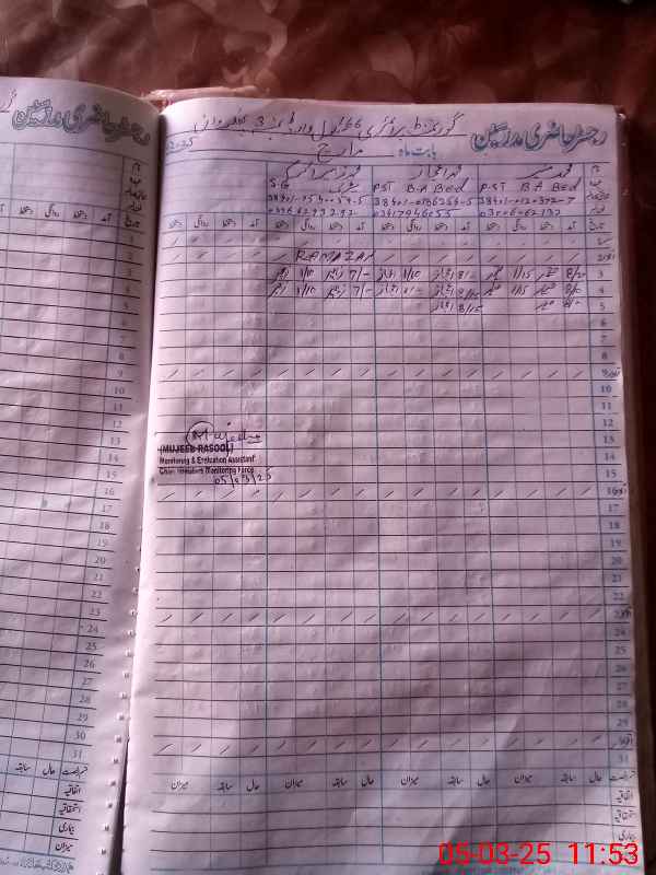 | Name: MU**** MU**** AN**** Designation: (School Headmaster's/Headmistress's) PST Phone/Cell Number: 03**** 60**** |
