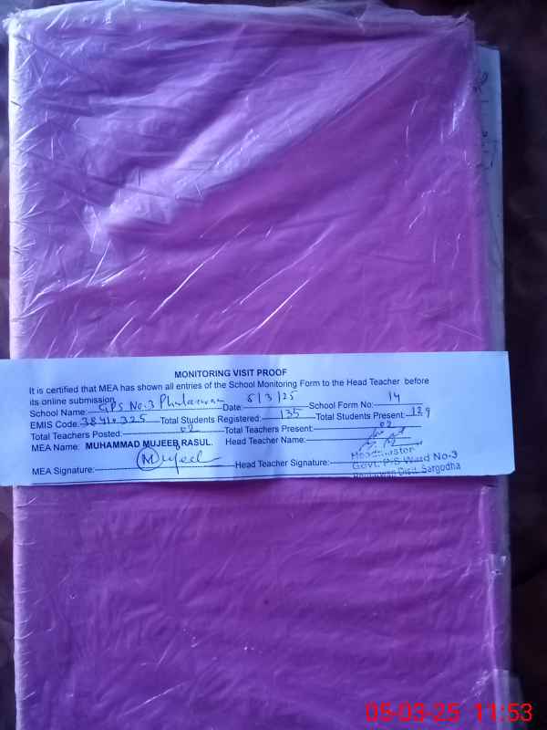 | EMIS Code: 38410325 | Name of School: GPS NO. 3 PHULARWAN | |||