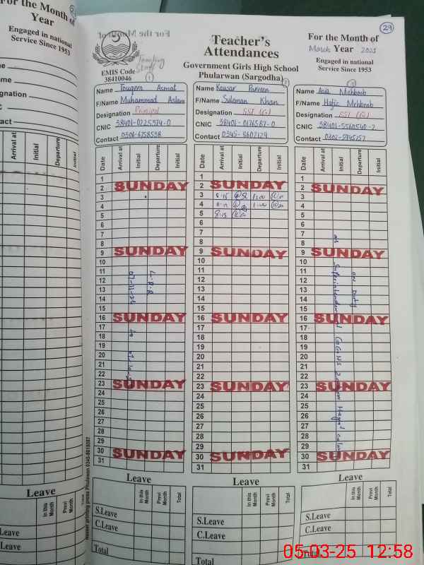 | 38**** | As**** Me**** | SST | Regular | 0 | 0 | 0 | 0 | 0 | 0 | 0 | 0 | 0 | Exam Duty |
