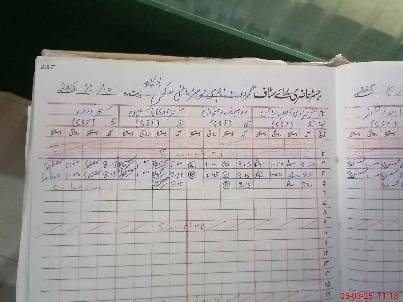 | 35**** | Sa**** Na**** | EST | Regular | 0 | 0 | 0 | 0 | 0 | 0 | 0 | 0 | 0 | Exam Duty |