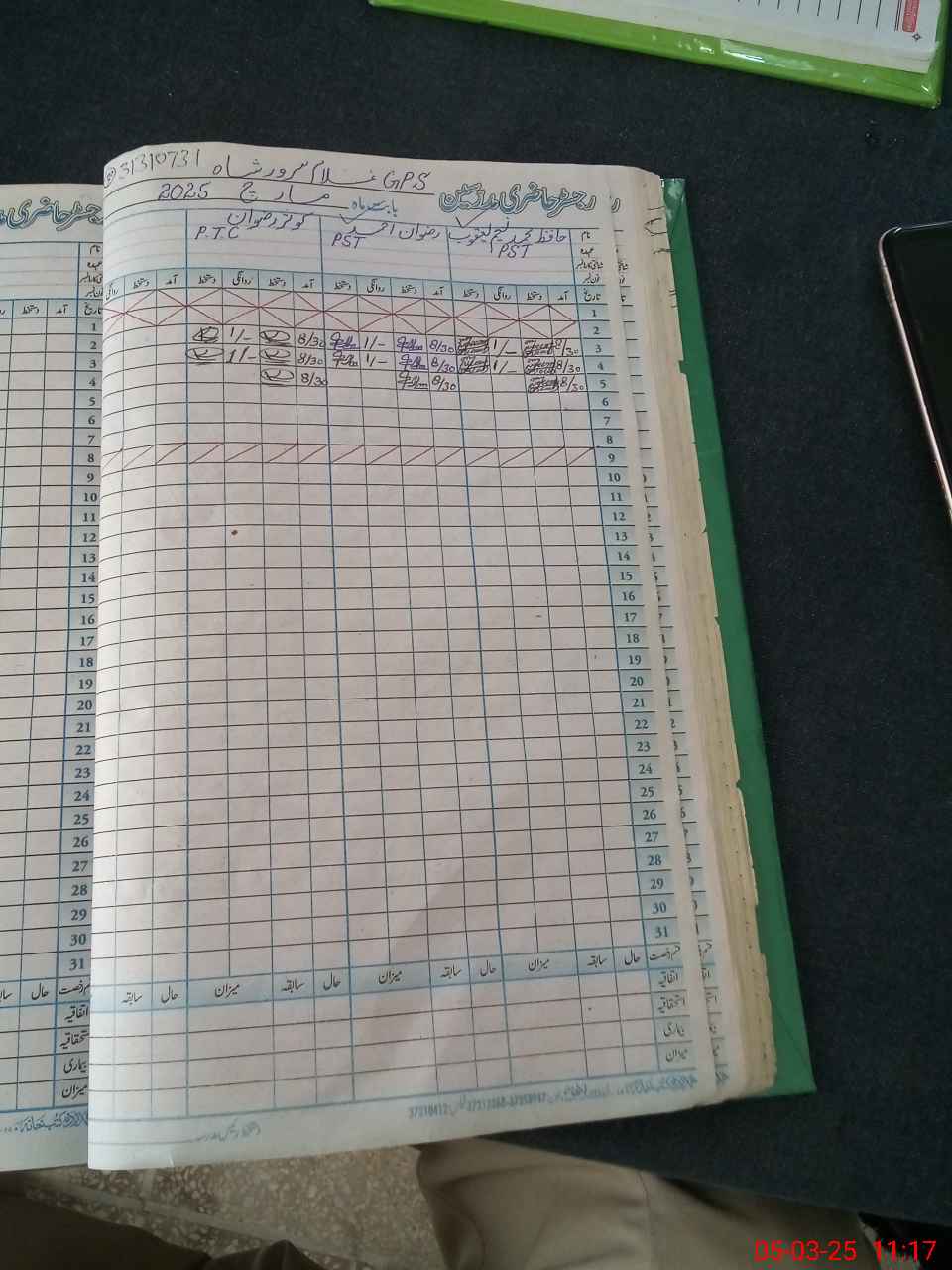 | CNIC | Full Name | Designation | R/C | Absence during last cal. month |