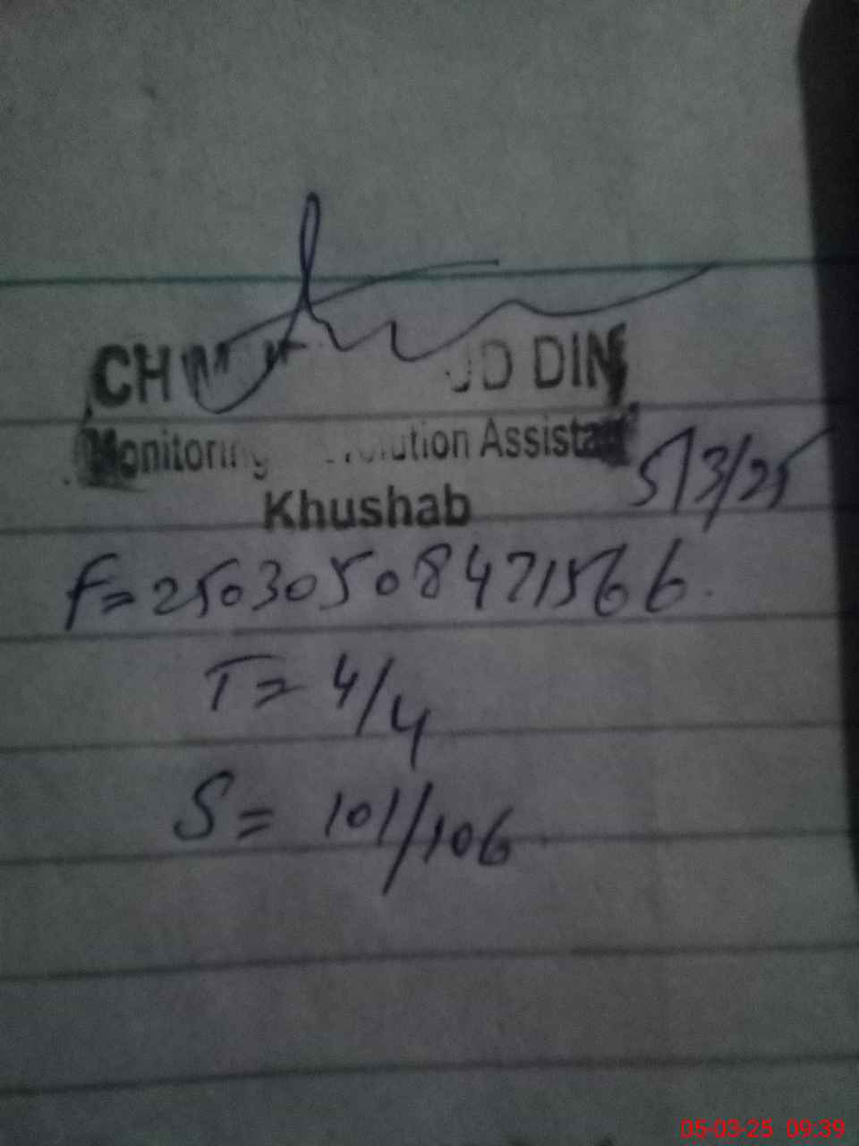 | District: KHUSHAB | Tehsil: NAUSHERA | Markaz: NOUSHERA (FEMALE) | Level: Primary | |
