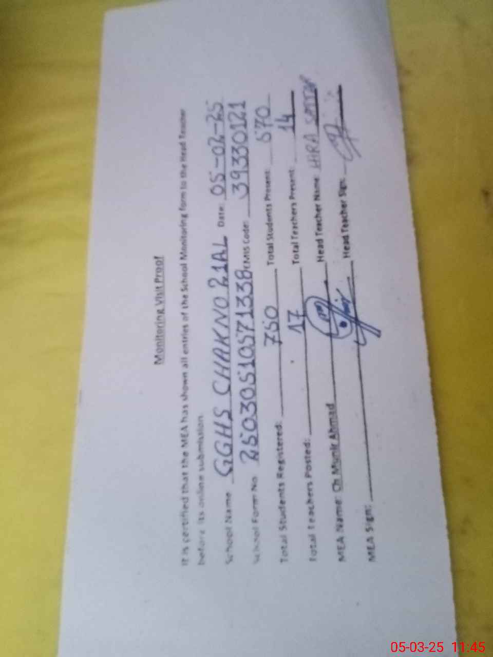 | Name: HI**** SA**** Designation: (School Headmaster's/Headmistress's) SSE INCHARGE HM Phone/Cell Number: 03**** |