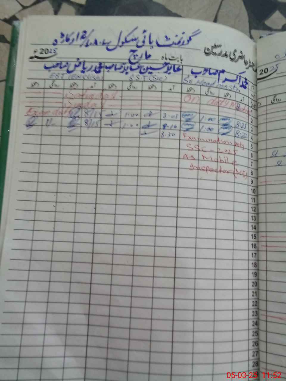 | 35**** | Mu**** Ak**** | 9 | 1 | 0 | 0 | 0 | 0 | 0 | 0 | 0 | 0 | 0 | Exam Duty |