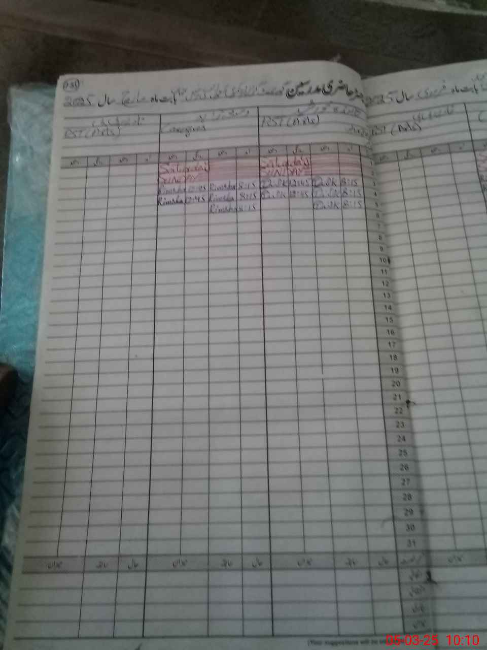 | CNIC | Full Name | Designation | R/C | Absence During Last Calender Month |