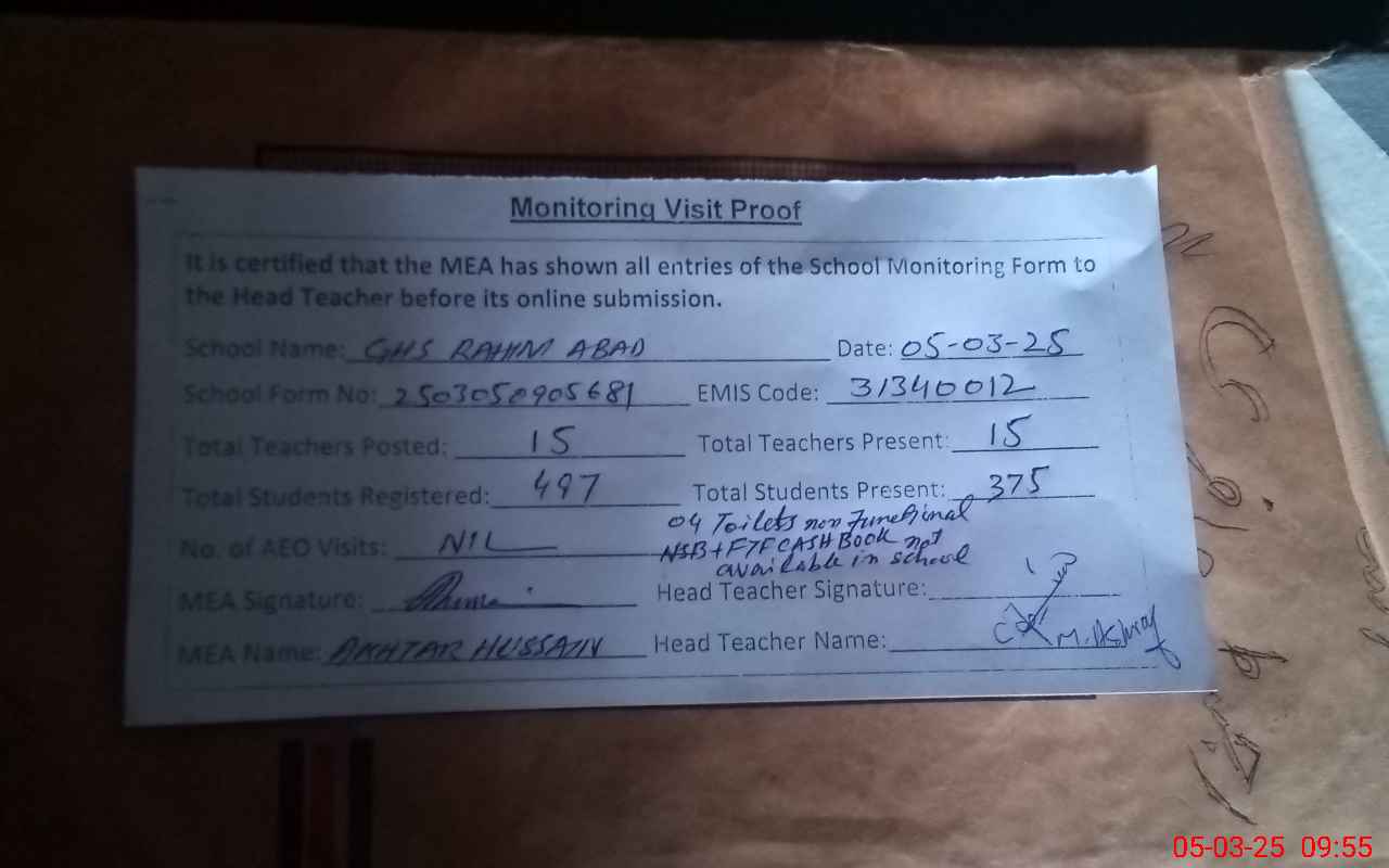 | EMIS Code: 31340012 | Name of School: GHS RAHEEM ABAD | |||