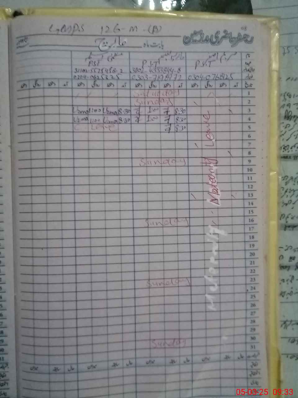 | Leave | Duty | Absent | Maternity | Medical | Ex- Pak |