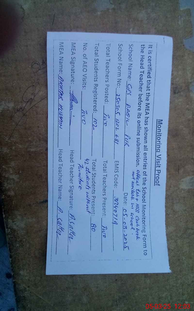 | EMIS Code: 31340719 | Name of School: GPS BAQIL PUR | |||