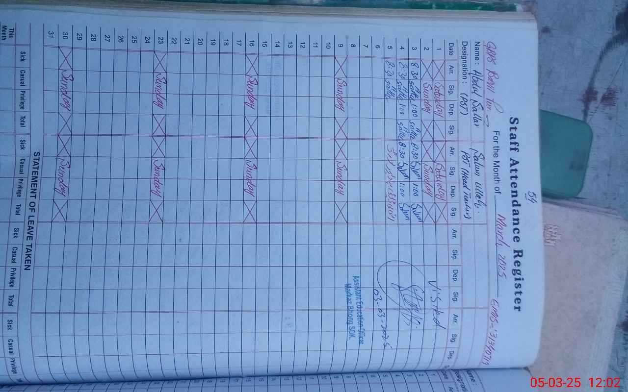 | 31**** | Sa**** Ul**** | PST | Regular | 0 | 0 | 0 | 0 | 0 | 0 | 0 | 0 | 0 | Exam Duty |