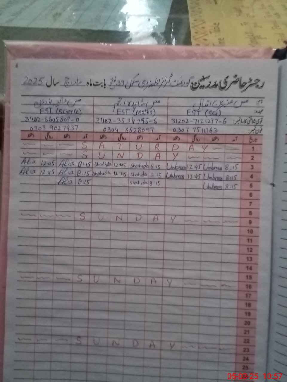 | Name: Um**** Iq**** Designation: (School Headmaster's/Headmistress's) EST Sci Phone/Cell Number: 03**** |