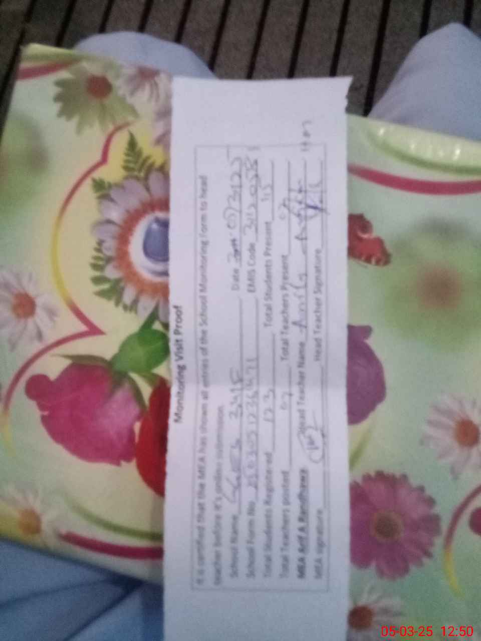 | Attendance Register | Head Teacher | MEA with School | Visit Proof |