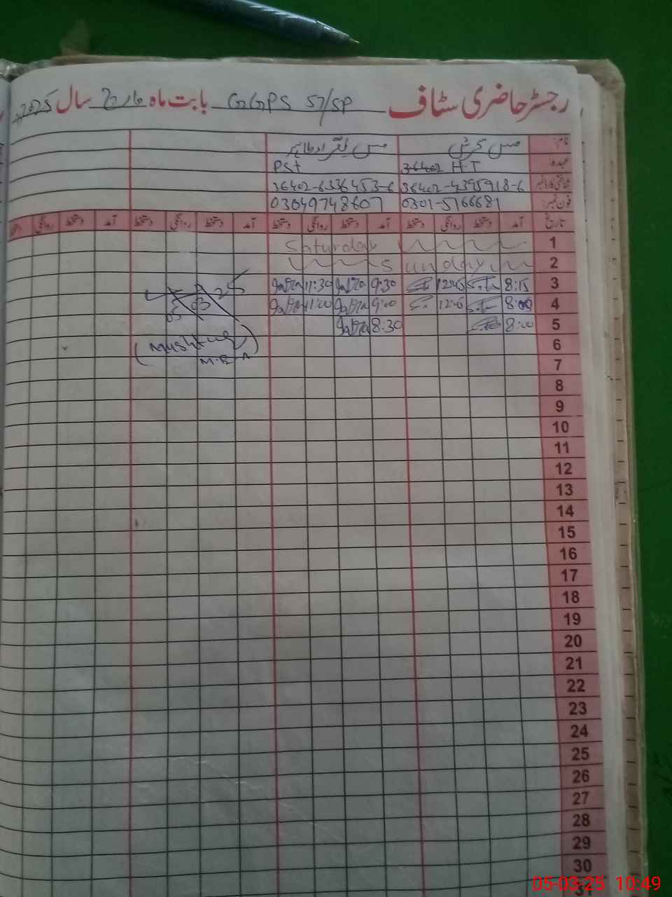 | Name: SA**** Designation: (School Headmaster's/Headmistress's) PST Phone/Cell Number: 03**** |