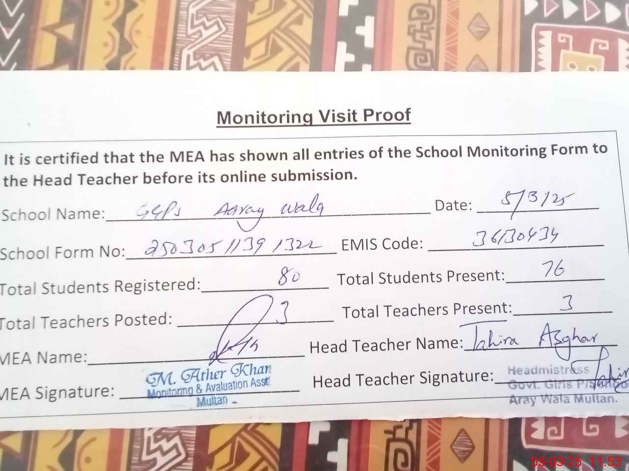 | EMIS Code: 36130434 | Name of School: GGPS AARAY WALA MUZA JHOK LASHAKAR PUR | |||