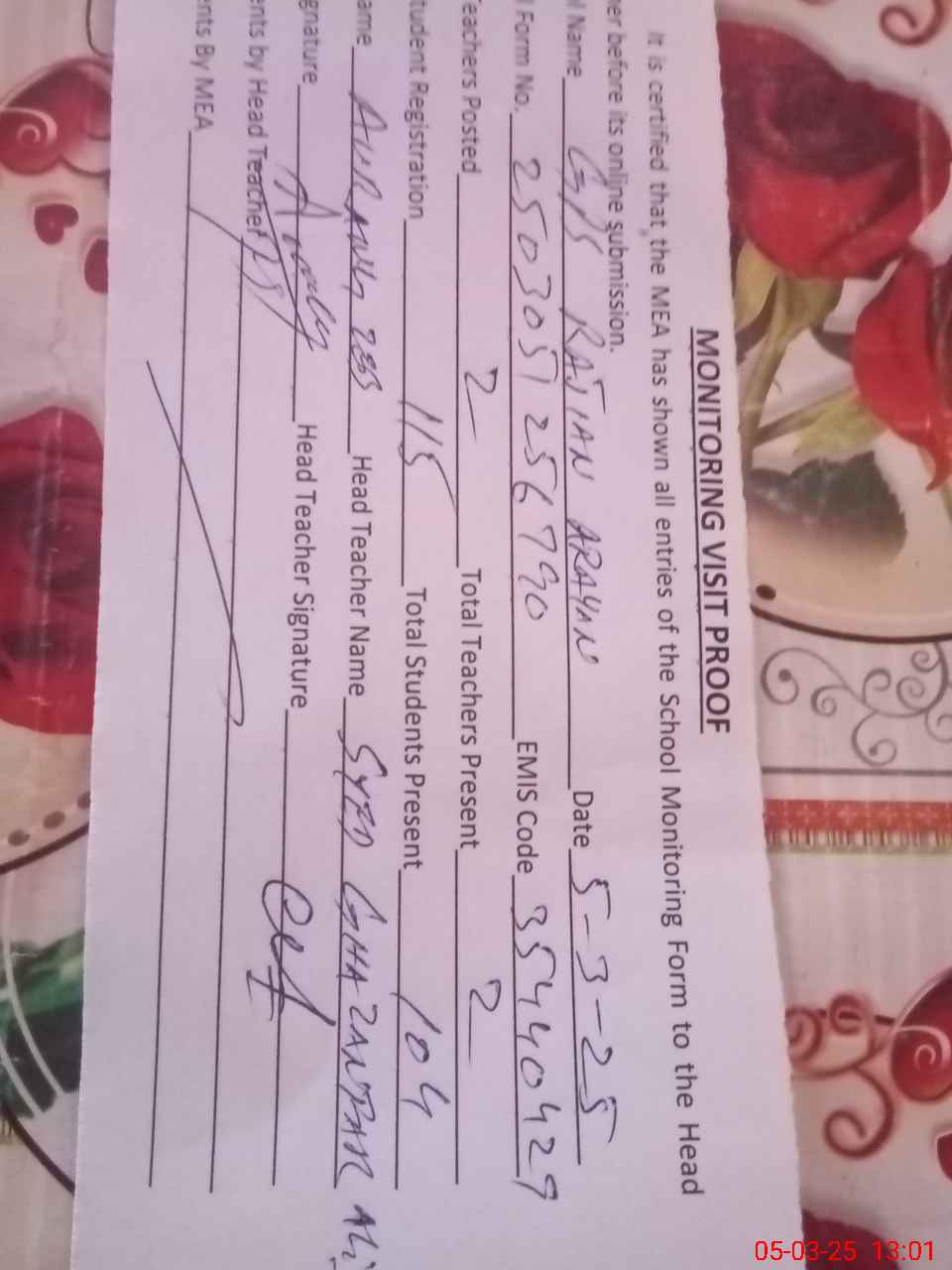 | EMIS Code: 35440429 | Name of School: GPS RAJIAN ARYAN | |||