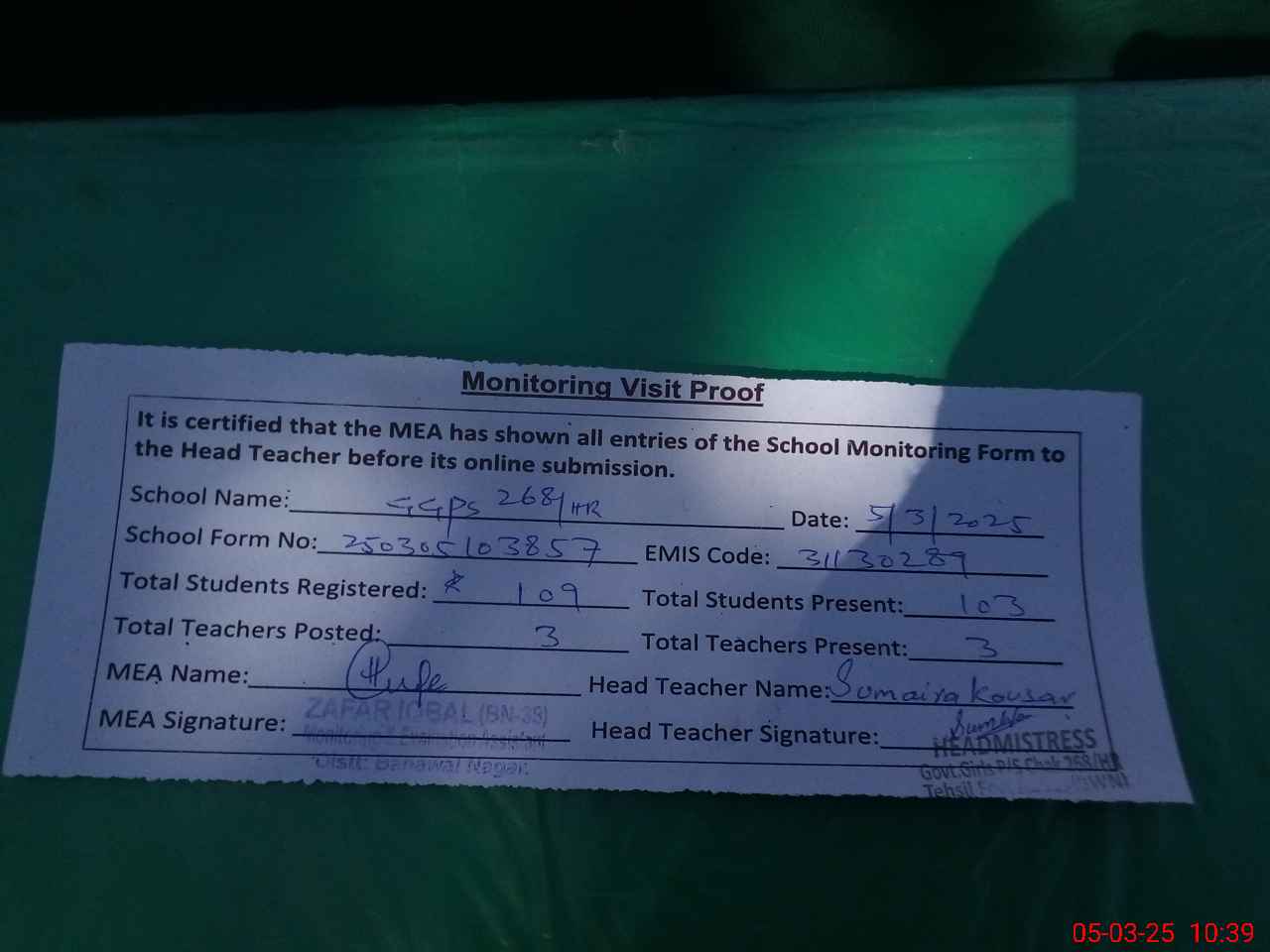 | EMIS Code: 31130289 | Name of School: GGPS CHAK NO 268 HR | |||