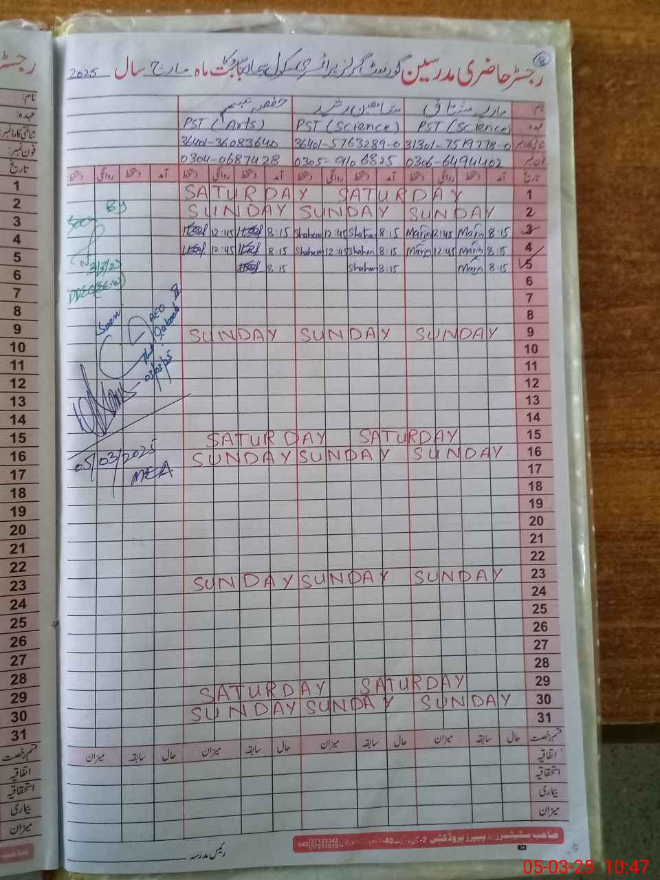| Name: MA**** MU**** Designation: (School Headmaster's/Headmistress's) PST Phone/Cell Number: 03**** |