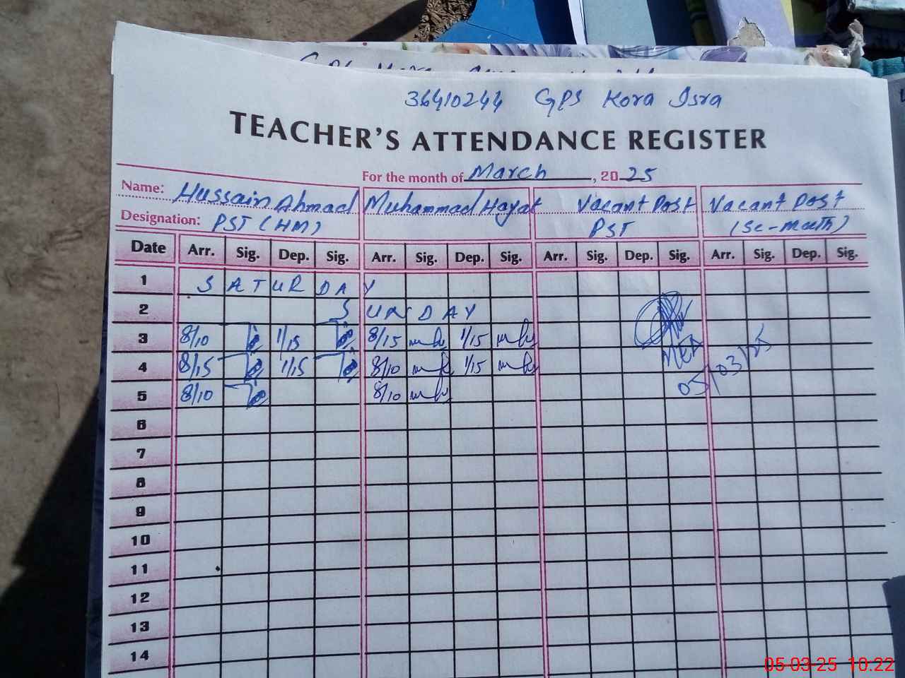 | Name: Hu**** Ah**** Designation: (School Headmaster's/Headmistress's) PST Phone/Cell Number: 03**** |