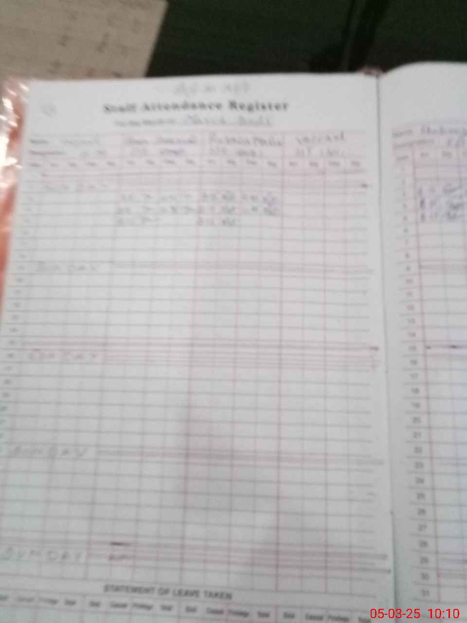 | 31**** | Ru**** Ka**** | 1 | 1 | 0 | 0 | 0 | 0 | 0 | 0 | 0 | 0 | 0 | Exam Duty |