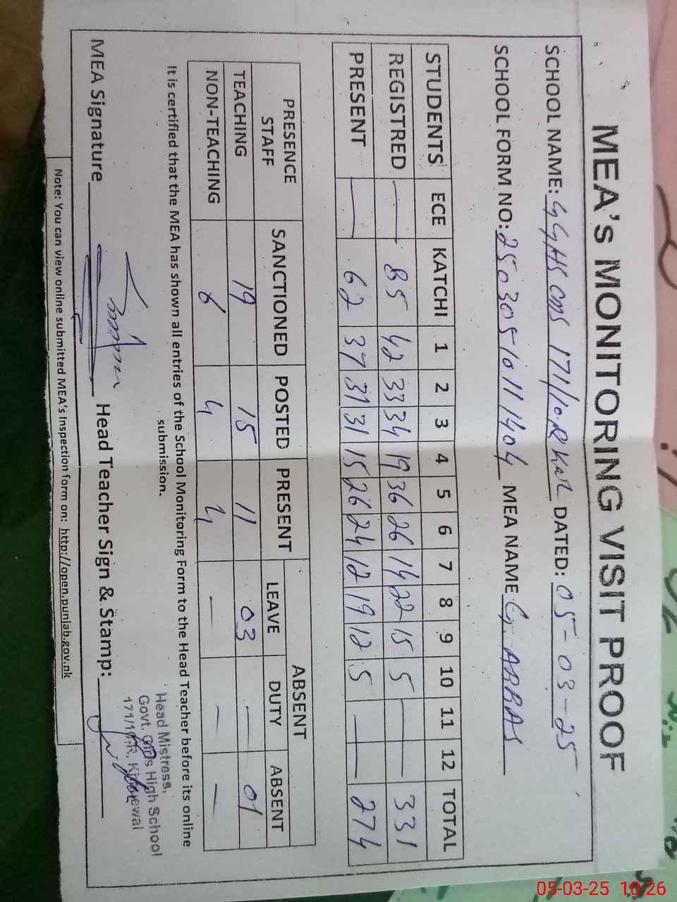 | EMIS Code: 36420392 | Name of School: GGHS CMS 171/10-R KHANEWAL | |||