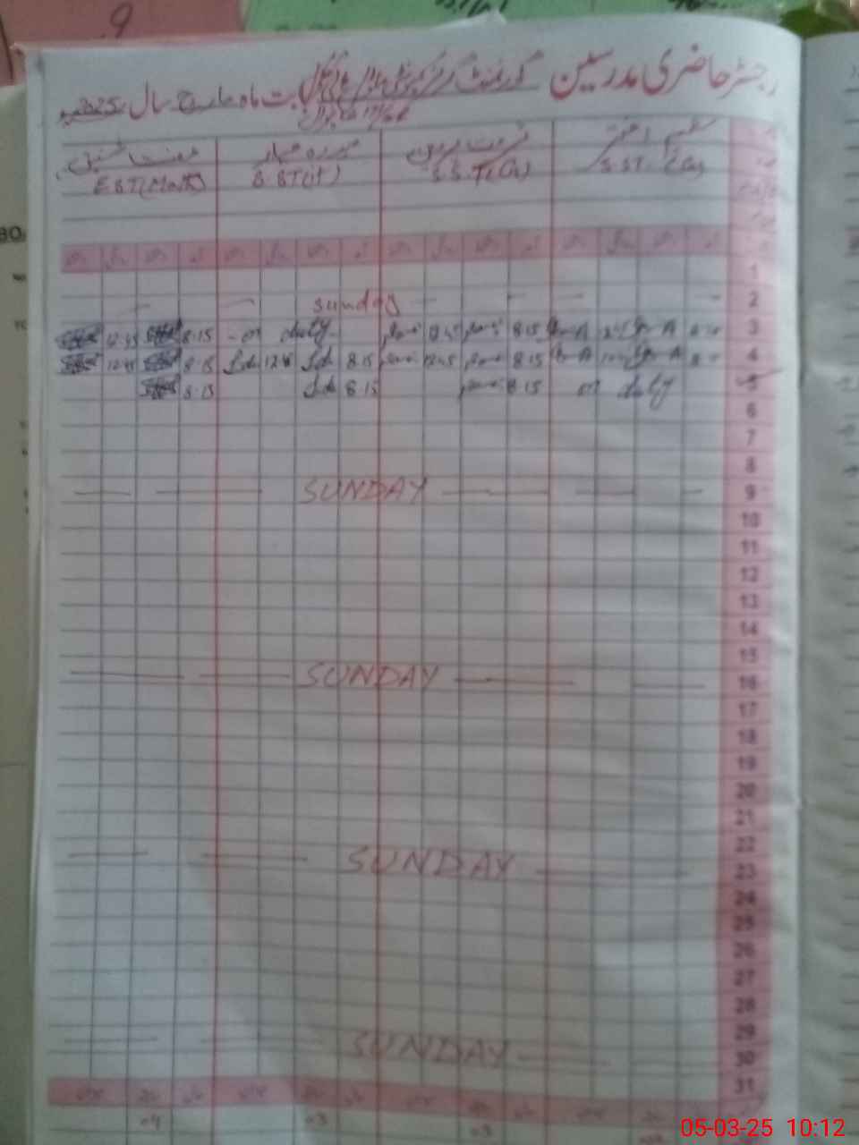 | Remarks (Use Separate Page if Required): Head teacher sst shamim akhter marked on attendance register as on duty but no any order or wirtten evidence is available in school | |||||