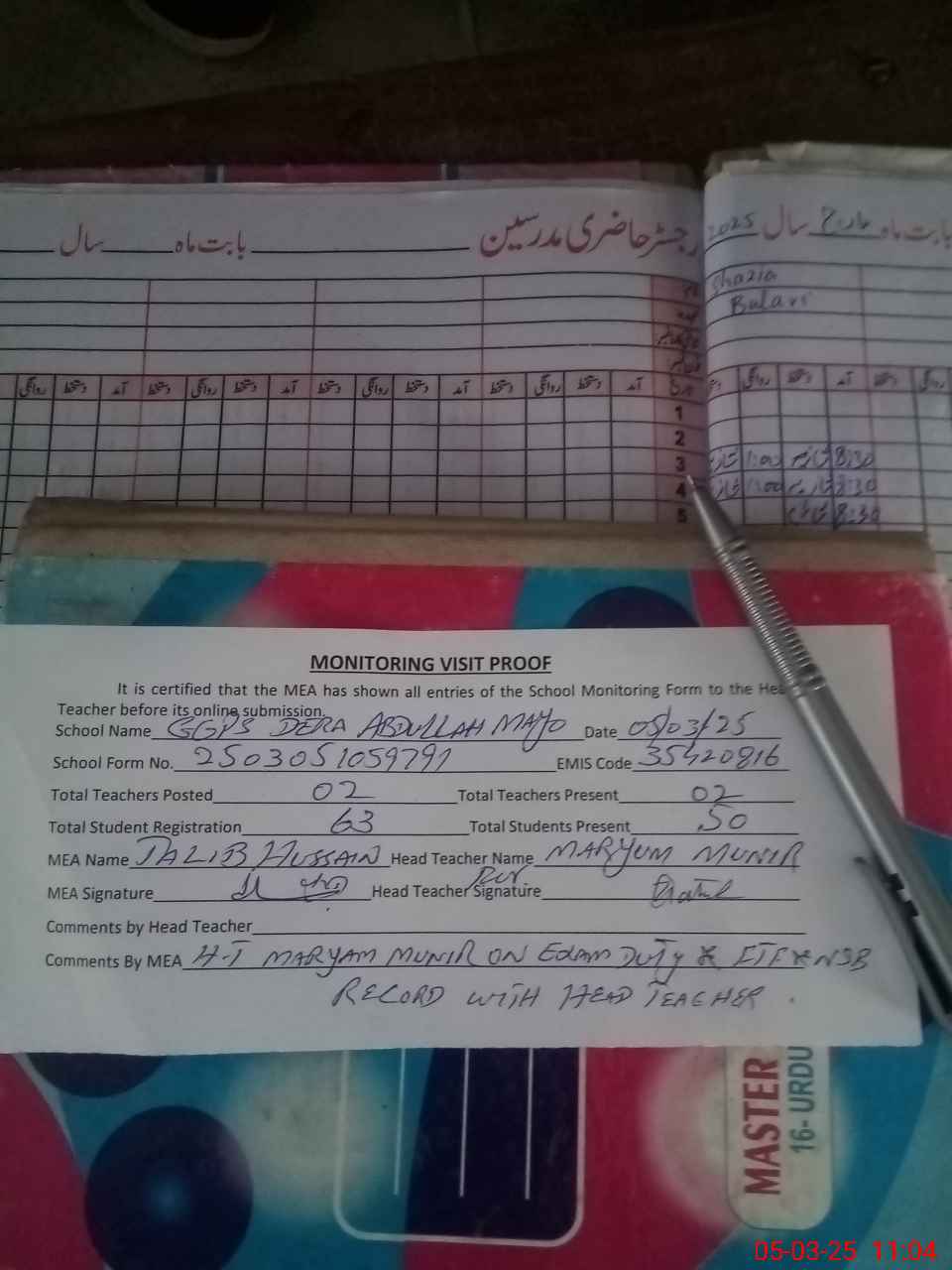 | EMIS Code: 35420816 | Name of School: GGPS DERA ABDULLAH MAYO | |||