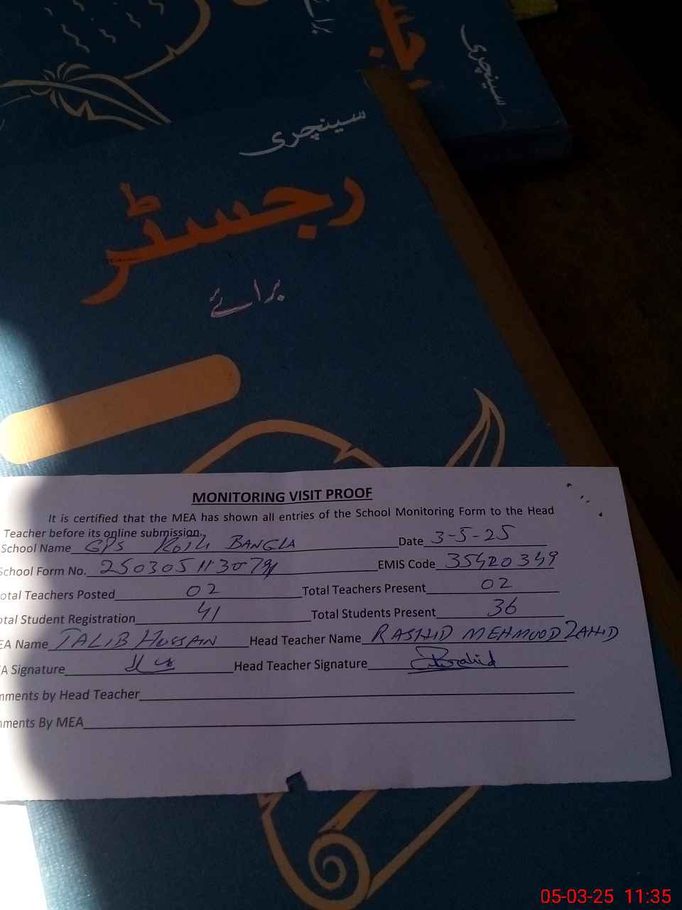 | EMIS Code: 35420349 | Name of School: GPS KOTLI BANGLA | |||