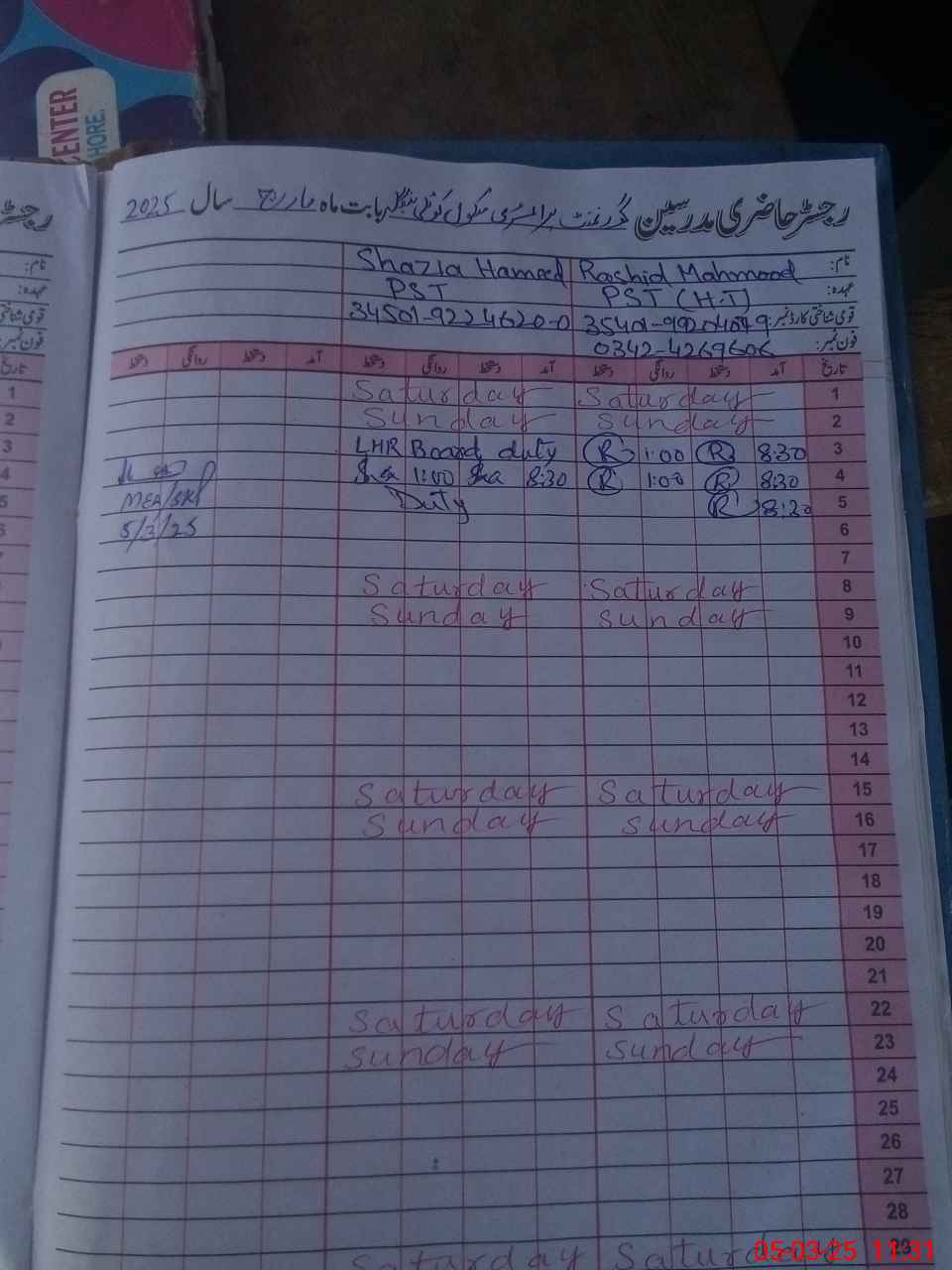 | 34**** | Sh**** Ha**** | PST | Regular | 2 | 0 | 0 | 0 | 0 | 0 | 0 | 0 | 2 | Exam Duty |
