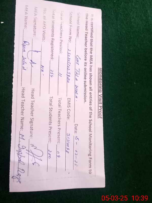 | EMIS Code: 31310048 | Name of School: GHS TALA WALA | |||