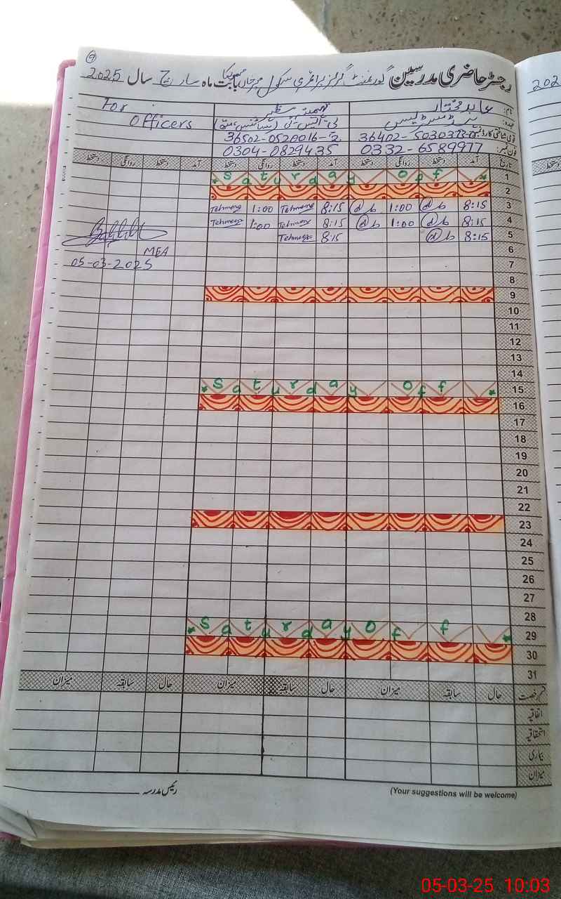 | Name: Ab**** Mu**** Designation: (School Headmaster's/Headmistress's) PST Phone/Cell Number: 03**** |
