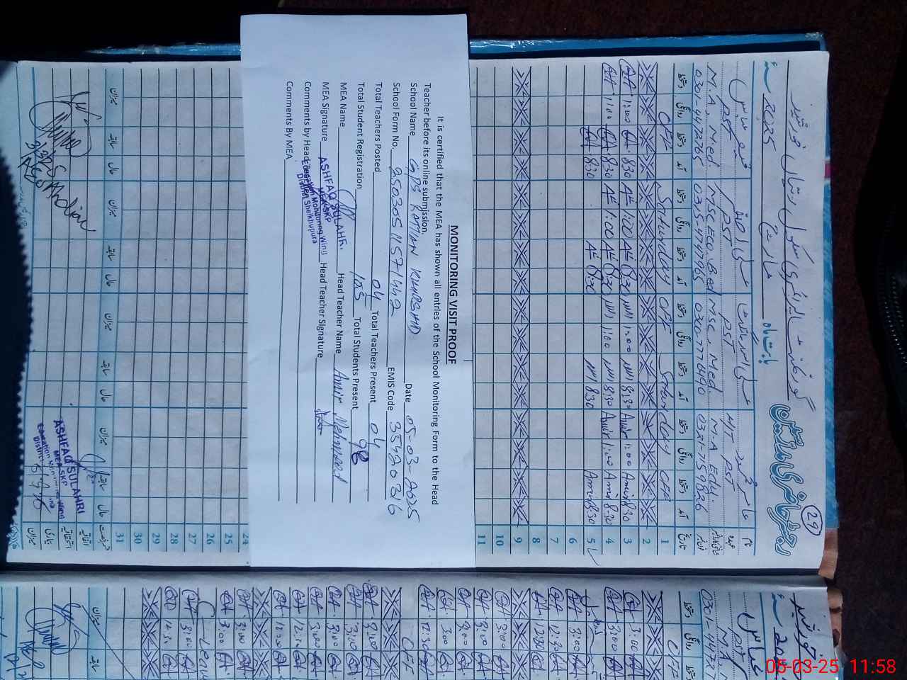 | Attendance Register | Head Teacher | MEA with School | Visit Proof |