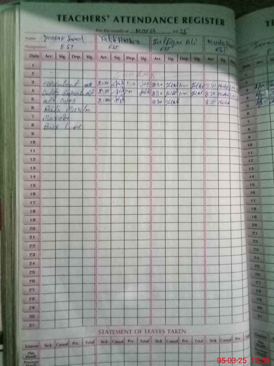 | 35**** | Mu**** Yo**** Ja**** | Regular | 1 | 0 | 0 | 0 | 0 | 0 | 0 | 0 | 1 | Exam Duty | |