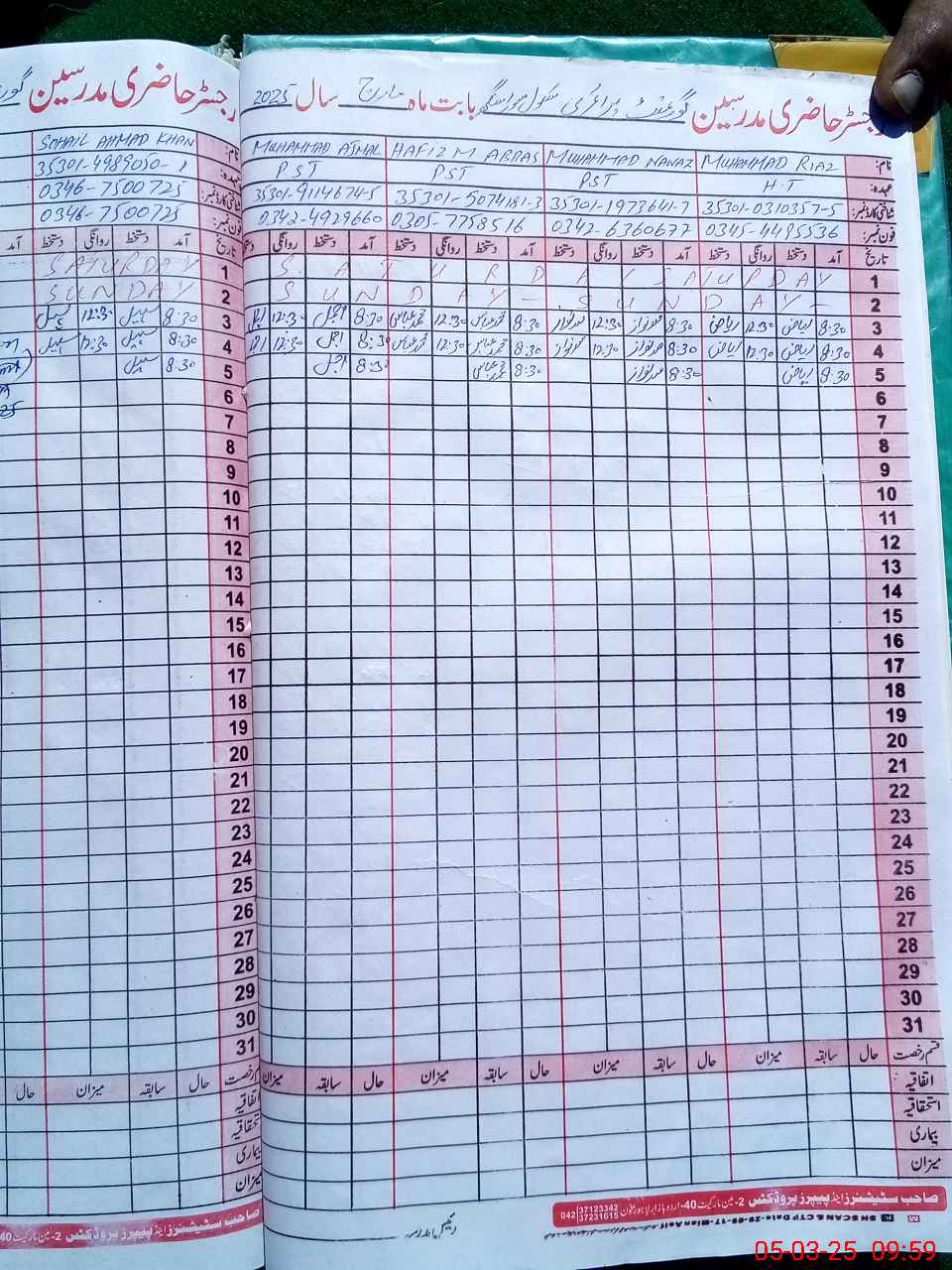 | Name: Mu**** Ri**** Designation: (School Headmaster's/Headmistress's) PST Phone/Cell Number: 03**** |
