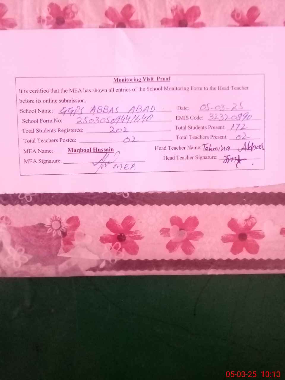 | EMIS Code: 32320890 | Name of School: GGPS BASTI ABBAS ABAD | |||