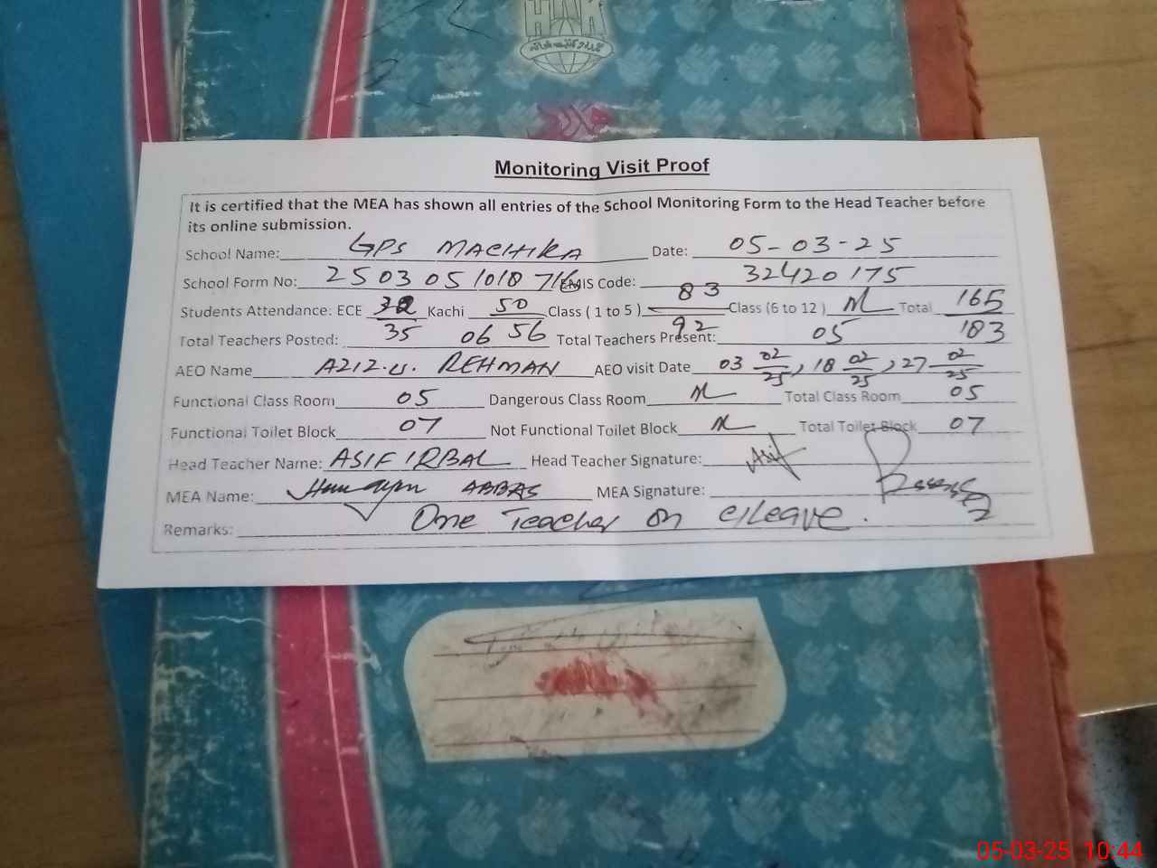 | EMIS Code: 32420175 | Name of School: GES MACHIKA | |||