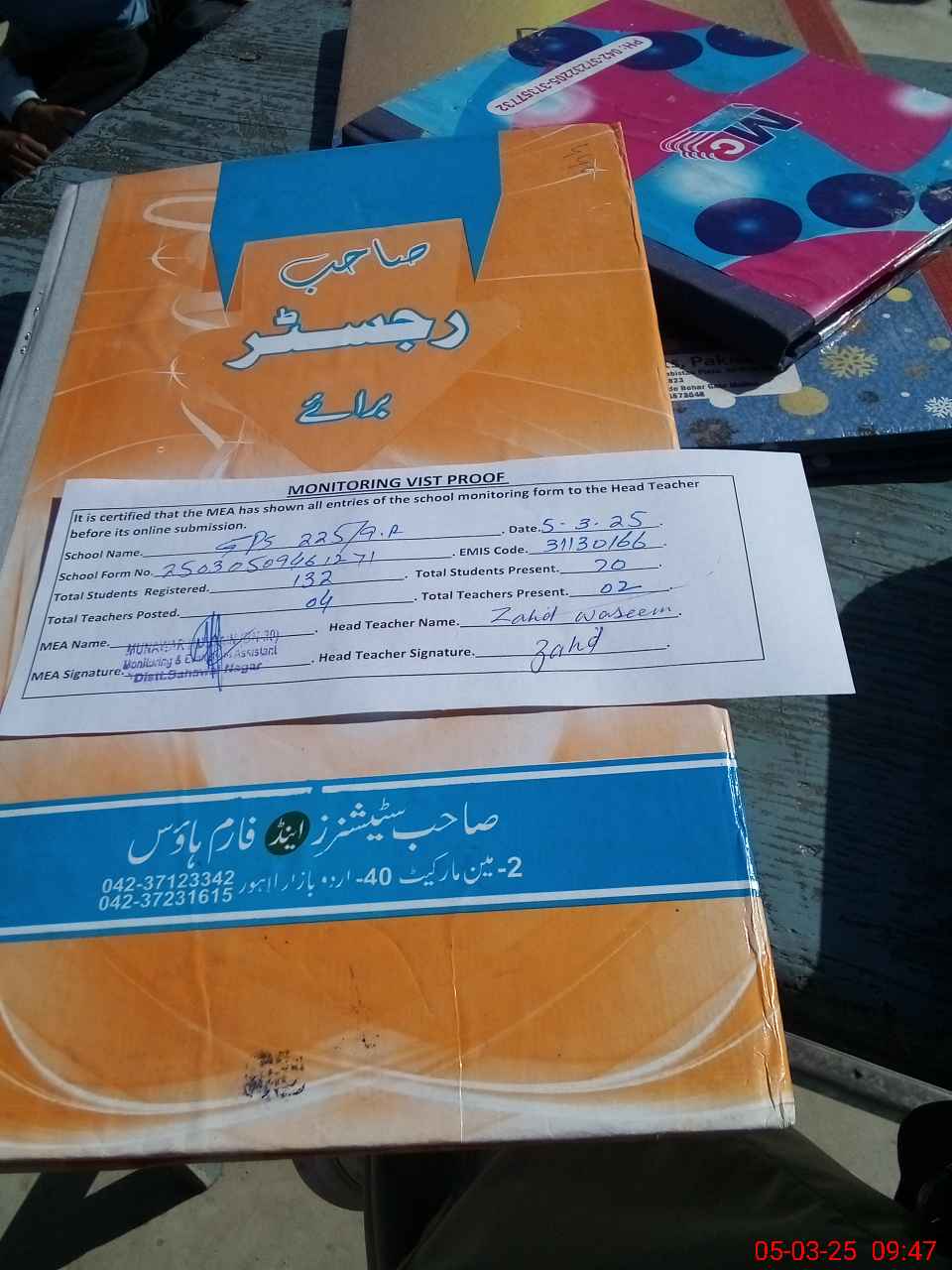 | EMIS Code: 31130166 | Name of School: GPS CHAK NO.225/9-R | |||