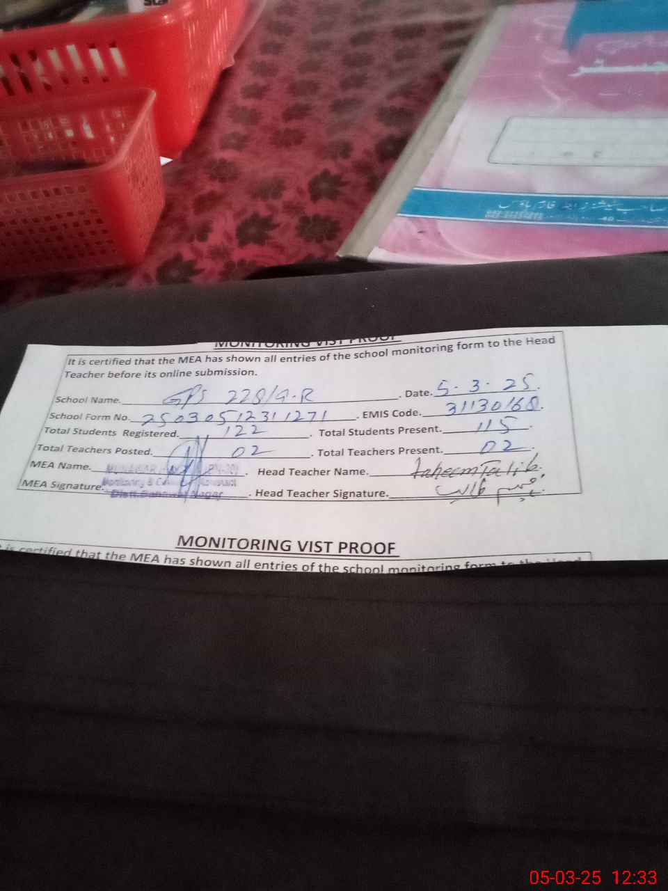 | EMIS Code: 31130168 | Name of School: GPS CHAK 228/9-R | |||