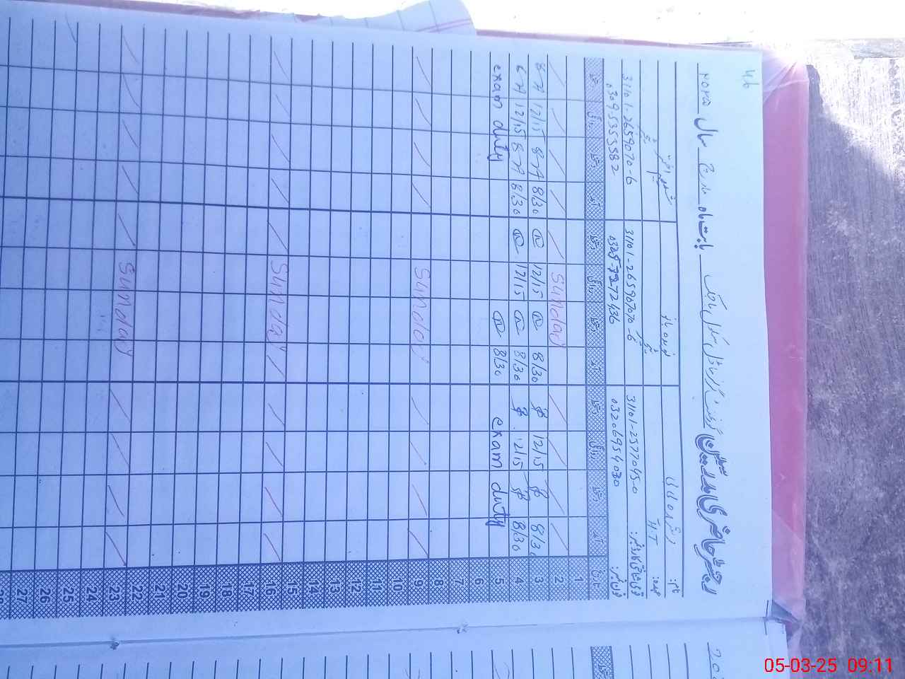 | 31**** | Sh**** Ak**** | 1 | 1 | 0 | 0 | 0 | 0 | 0 | 0 | 0 | 0 | 0 | Exam Duty |