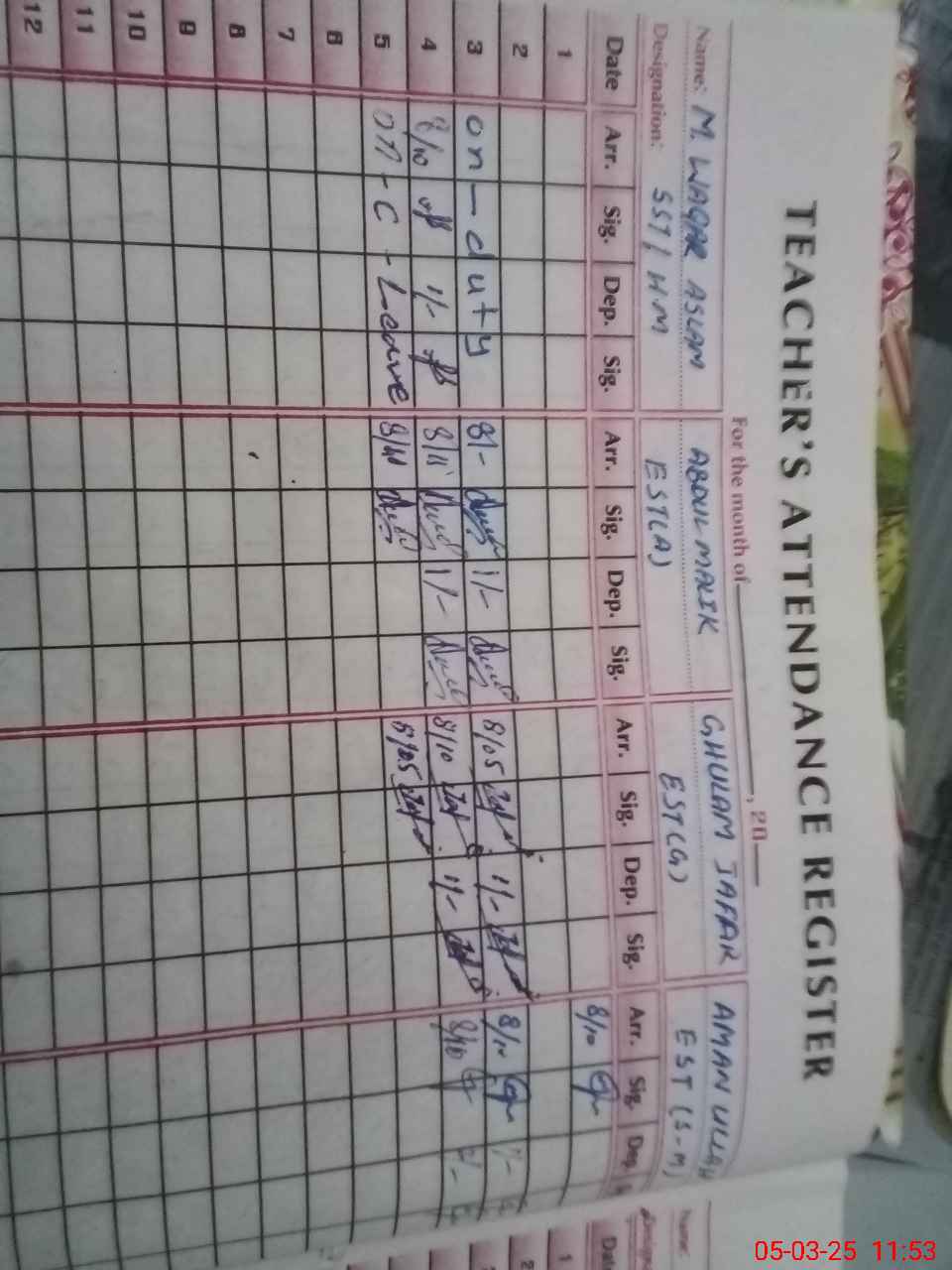 | Name: RA**** WA**** Designation: (School Headmaster's/Headmistress's) SST (G) Phone/Cell Number: 03**** |