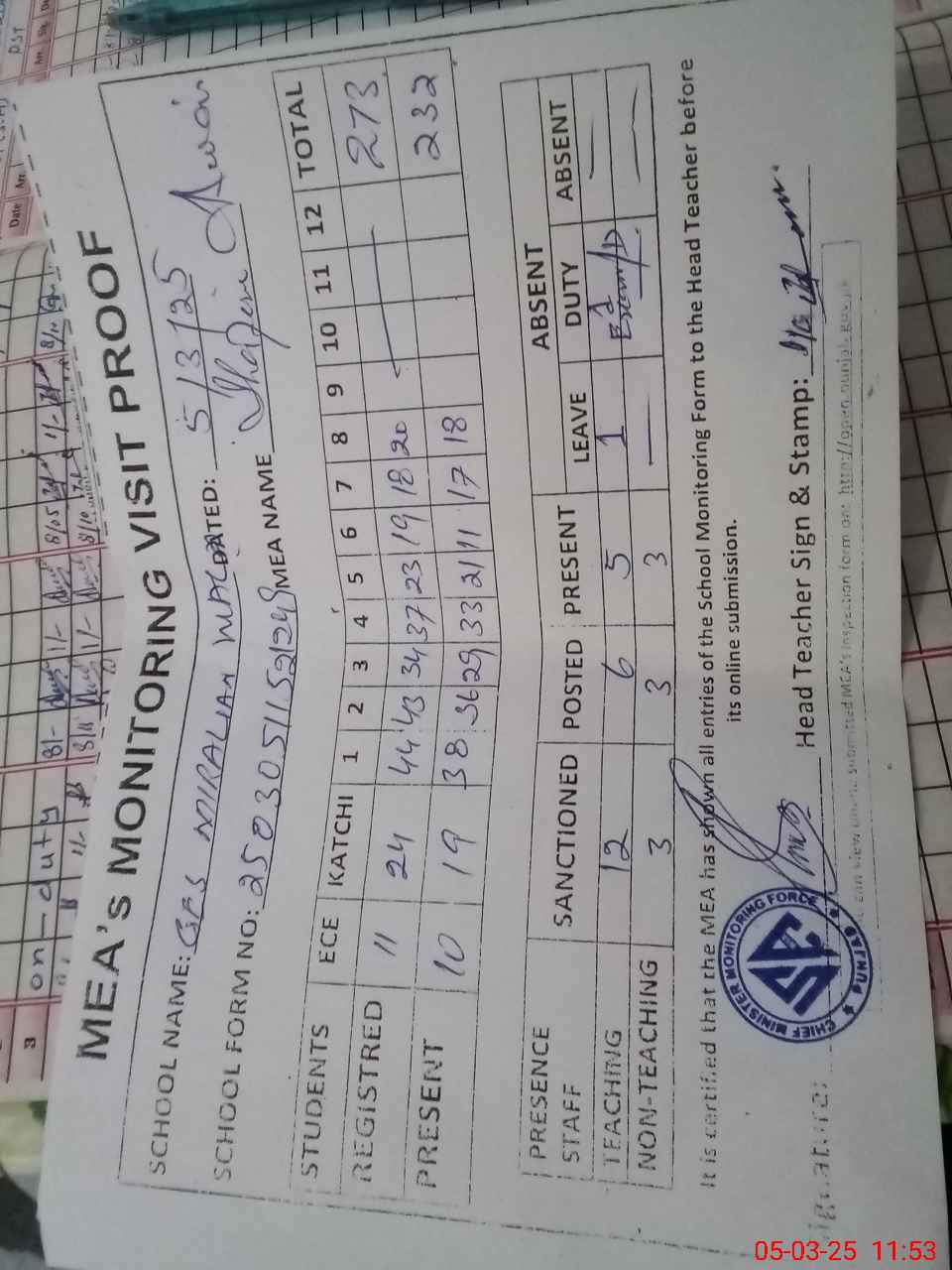 | EMIS Code: 36410203 | Name of School: GES MIRALIAN WALA, P/O MOUZA OKAAN WALA, KABIRWALA | |||