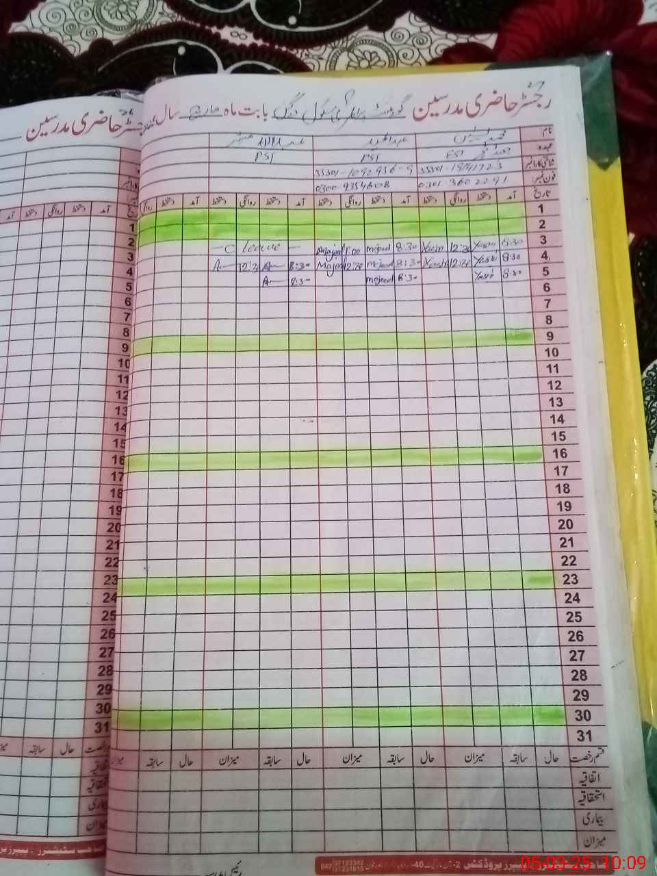 | CNIC | Full Name | Designation | R/C | Absence During Last Calender Month |