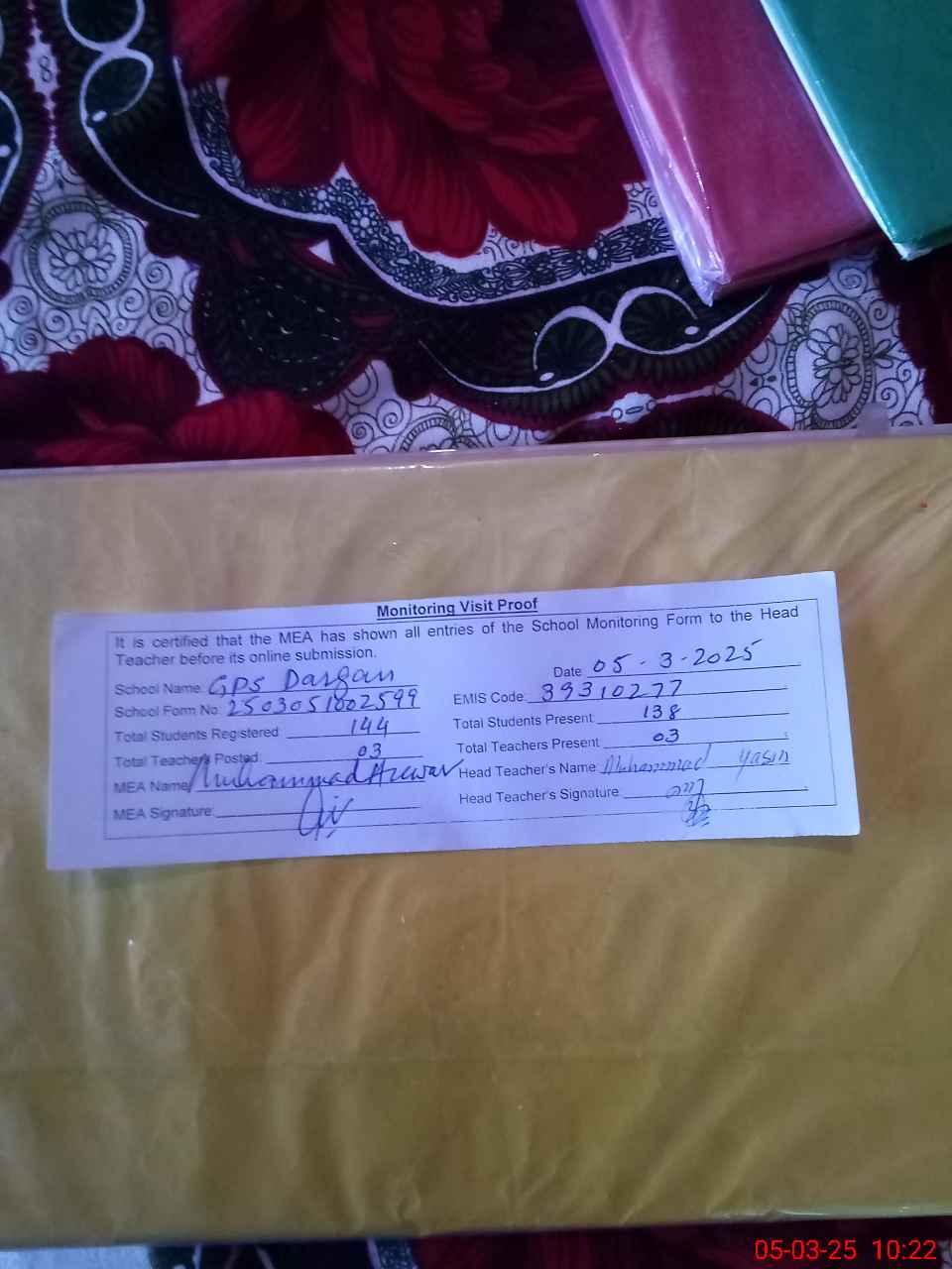 | EMIS Code: 39310277 | Name of School: GPS DARGAN | |||