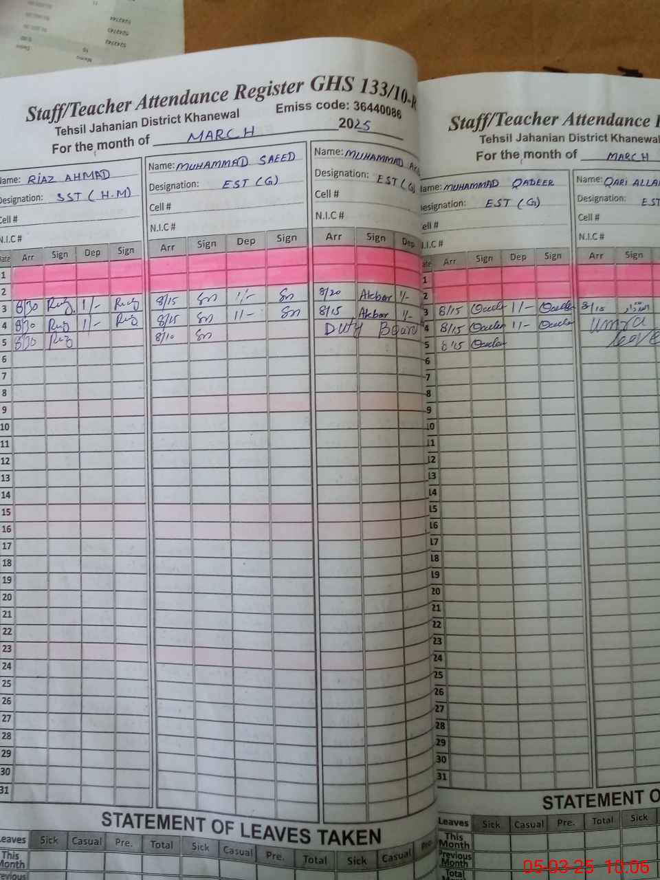 | 36**** | Mu**** Ak**** | 3 | 1 | 0 | 0 | 0 | 0 | 0 | 0 | 0 | 0 | 0 | Exam Duty |