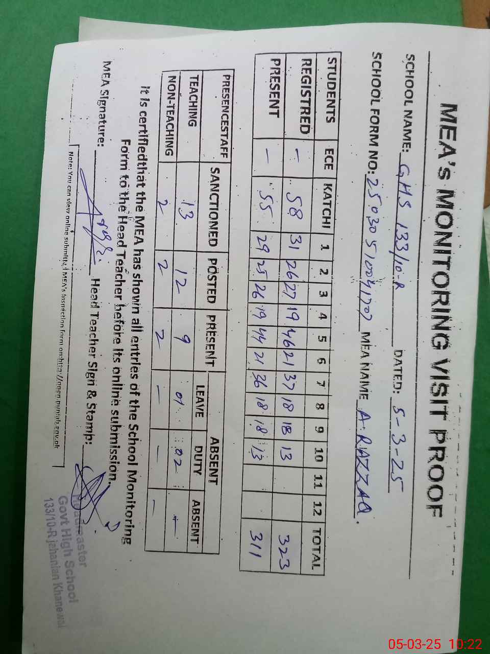 | EMIS Code: 36440086 | Name of School: GHS 133/10-R, JAHANIAN | |||