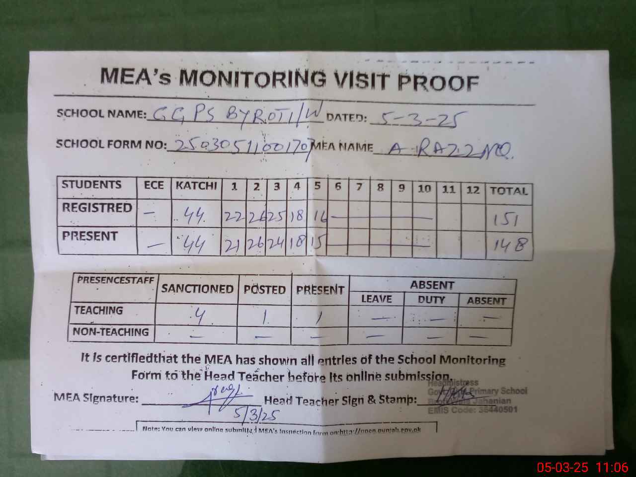 | EMIS Code: 36440501 | Name of School: GGPS BYROTI WALA, JAHANIAN | |||
