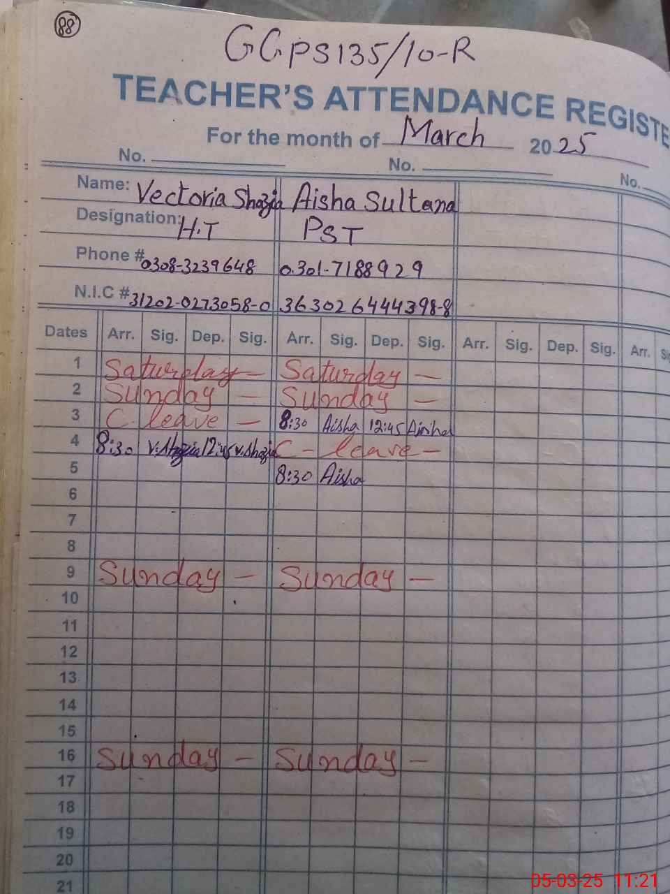 | Name: Ve**** Sh**** Designation: (School Headmaster's/Headmistress's) ESE (ARTS) Phone/Cell Number: 03**** |