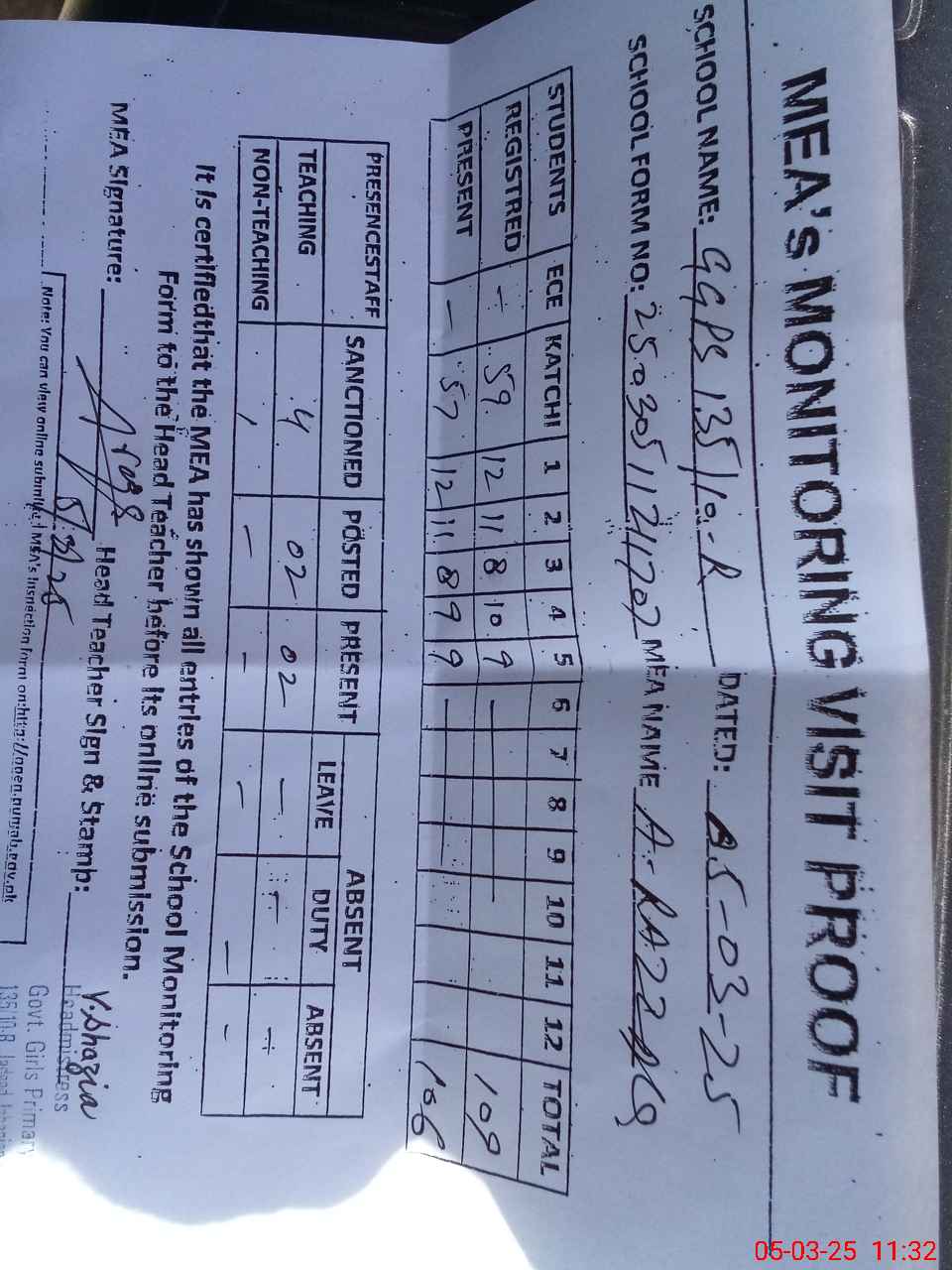 | EMIS Code: 36440536 | Name of School: GGPS 135/10-R JADEED, JAHANIAN | |||