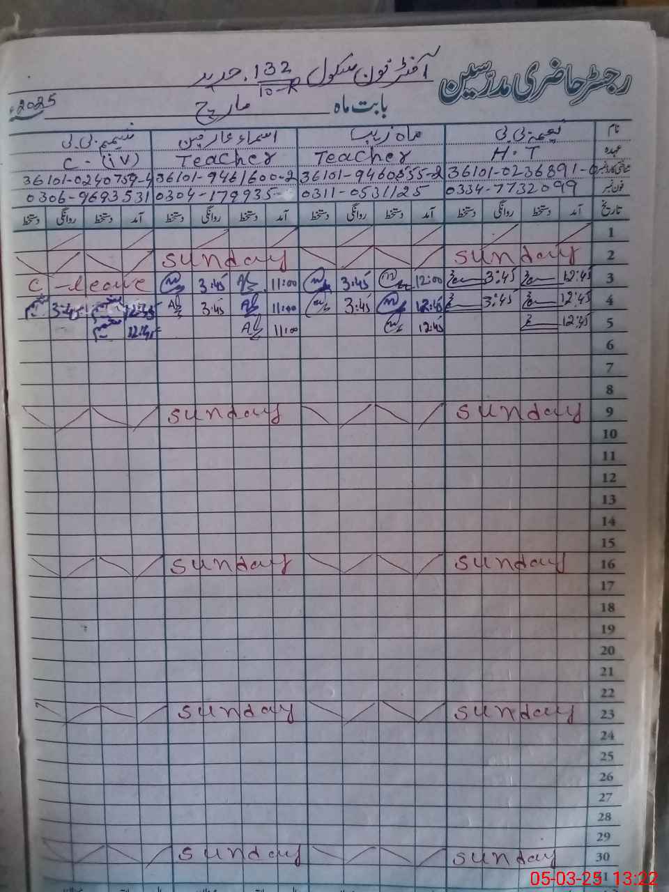 | Name: Ra**** Ir**** Designation: (School Headmaster's/Headmistress's) ESE (SCI-MATH) Phone/Cell Number: 03**** |